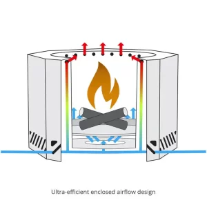 • Эффективный обогрев: благодаря конструкции с воздушными каналами во внутренних стенках создаётся сверхнагретое пламя. Предварительно подогретый воздух поступает прямо в топку, обеспечивая больше тепла и меньше дыма.