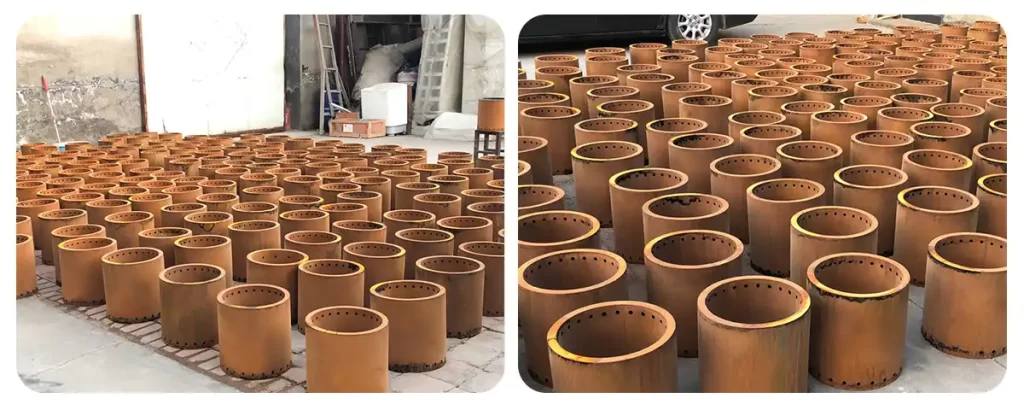• Костровые чаши из кортеновской стали поставляются в виде «синей» стали и со временем образуют защитную патину под воздействием атмосферных условий.