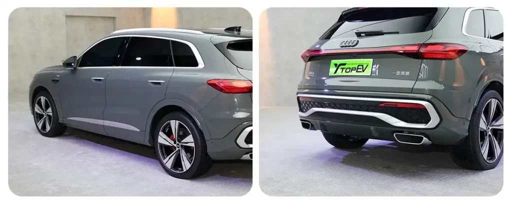 Габариты Audi Q5L составляют 4 842 мм в длину, 1 900 мм в ширину и 1 660 мм (1 640 мм) в высоту, при колёсной базе 2 945 мм. Модель оснащается 20-дюймовыми легкосплавными колёсными дисками с пятью сдвоенными спицами, обутыми в шины 255/45 R20. Палитра цветов кузова включает Legend Black, Qingcheng Green, Jasmine White, Mandalorian Silver и Khaki Brown.