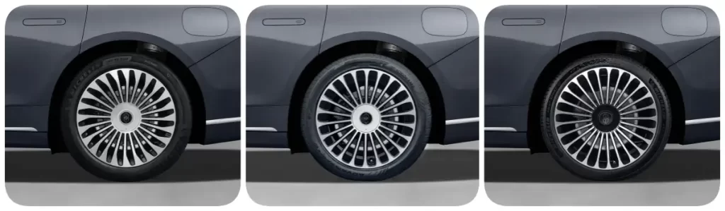 Боковой профиль является самым выразительным элементом Stelato S9T. Согласно заявлению бренда, его пропорции соответствуют «золотому правилу» автомобильного дизайна: соотношение ширины к высоте 1,32, диаметр колеса вдвое больше высоты, а колёсная база в три раза больше диаметра колеса, что создаёт элегантный силуэт. Габариты модели составляют 5160 × 2005 × 1492 мм, колёсная база — 3050 мм. В стандартное оснащение входят 20-дюймовые многоспицевые диски Starry, опционально доступны 20-дюймовые многоспицевые диски Starlight и 21-дюймовые кованые диски Starry.